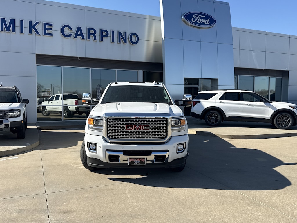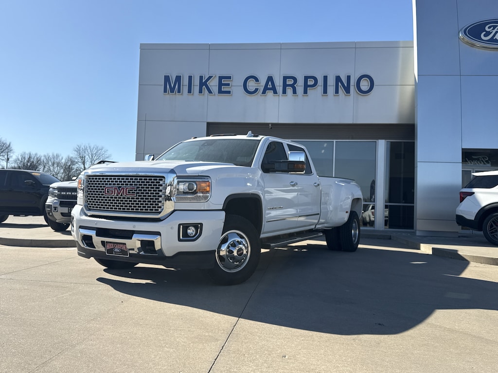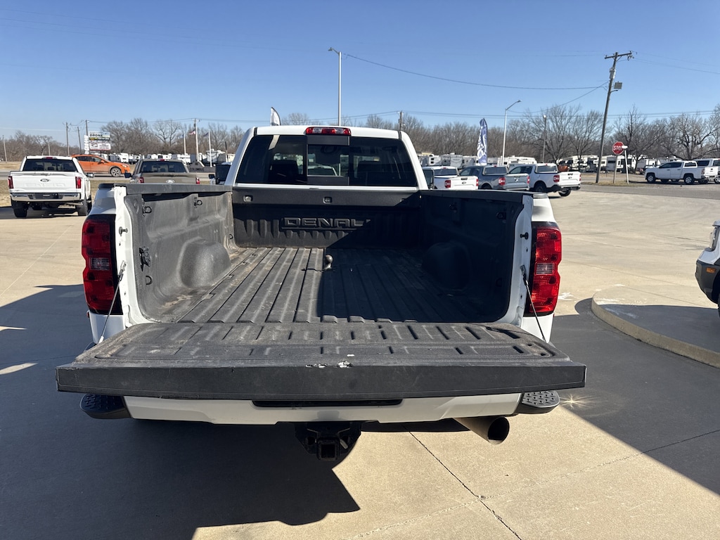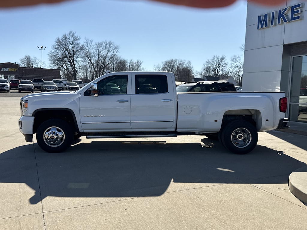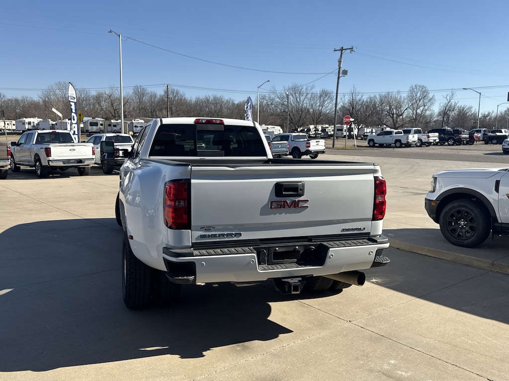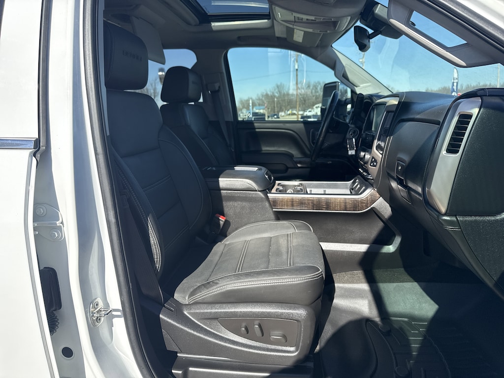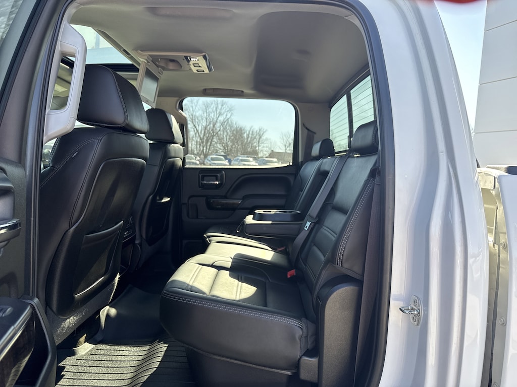 SEATS FRONT FULL-FEATURE LEATHER-APPOINTED BUCKET WITH (KA1) HEATED SEAT CUSHIONS AND SEAT BACKS. Includes 10-way power driver and front passenger seat adjusters including 2-way power lumbar control 2-position driver memory adjustable head restraints (D07) floor console and storage pockets. (STD),BRAKES 4-WHEEL ANTILOCK 4-WHEEL DISC with dual rear wheel and Duralife brake rotors,WHEEL 17 X 6.5 (43.2 CM X 16.5 CM) FULL-SIZE STEEL SPARE Spare not included with (ZW9) pickup box delete unless a spare tire is ordered.,LPO ASSIST STEPS CHROMED TUBULAR 6 RECTANGULAR (dealer-installed),SUMMIT WHITE,ENGINE BLOCK HEATER,ENTERTAINMENT PACKAGE REAR SEAT DVD/BLU-RAY PLAYER with 9.2 inch LCD display 2 sets of wireless headphones and A/V remote control,SUNROOF POWER,REAR AXLE 3.73 RATIO,TRANSMISSION ALLISON 1000 6-SPEED AUTOMATIC ELECTRONICALLY CONTROLLED with overdrive electronic engine grade braking and tow/haul mode,2015 INTERIM PROCESSING CODE,AUDIO SYSTEM 8 DIAGONAL COLOR TOUCH SCREEN NAVIGATION WITH INTELLILINK AM/FM/SIRIUSXM with USB ports auxiliary jack SD card slot Bluetooth streaming audio for music and most phones hands-free smartphone integration Pandora Internet radio and voice-activated technology for radio and phone,SUSPENSION PACKAGE STANDARD includes 51mm twin tube shock absorbers and 33mm front stabilizer bar (STD),TIRES LT235/80R17E ALL-TERRAIN,ENGINE DURAMAX 6.6L TURBO DIESEL V8 B20-DIESEL COMPATIBLE (397 hp [296.0 kW] @ 3000 rpm 765 lb-ft of torque [1032.8 N-m] @ 1600 rpm) Includes (K40) exhaust brake.,PICKUP BOX (STD),PAINT SOLID,JET BLACK PERFORATED LEATHER-APPOINTED SEAT TRIM,WHEELS 17 (45.7 CM) FORGED POLISHED ALUMINUM includes 17 steel spare wheel. Spare not included with (ZW9) pickup box delete unless a spare tire is ordered.,LAMPS SMOKED AMBER ROOF MARKER (required with dual rear wheels),DRIVER ALERT PACKAGE includes Lane Departure Warning Forward Collision Alert and Safety Alert Seat,TIRE SPARE LT235/80R17E ALL-TERRAIN,TRAILERING WIRING PROVISIONS FOR CAMPER FIFTH WHEEL AND GOOSENECK TRAILER includes additional 7-way wiring harness is located at the rear of the pickup box attached to the rear frame cross member,DENALI PREFERRED EQUIPMENT GROUP includes standard equipment,GVWR 13 025 LBS. (5908 KG) WITH DUAL REAR WHEELS,DURAMAX PLUS PACKAGE includes (LML) Duramax 6.6L Turbo Diesel V8 engine (MW7) Allison 1000 6-speed automatic transmission and (Y65) Driver Alert Package,LICENSE PLATE KIT FRONT Note: (VK3) deletes center lower bumper filler panel.,EXHAUST BRAKE,Locking/Limited Slip Differential,Four Wheel Drive,Tow Hitch,ABS,4-Wheel Disc Brakes,Tires - Front All-Season,Tires - Rear All-Season,Conventional Spare Tire,Tow Hooks,Conventional Spare Tire,Running Boards/Side Steps,Fog Lamps,Heated Mirrors,Power Mirror(s),Integrated Turn Signal Mirrors,Mirror Memory,Power Folding Mirrors,Privacy Glass,Rear Defrost,Sliding Rear Window,Bed Liner,AM/FM Stereo,Navigation System,Satellite Radio,MP3 Capability,Bluetooth Connection,Auxiliary Audio Input,Smart Device Integration,Requires Subscription,CD Player,MP3 Capability,Satellite Radio,Requires Subscription,Premium Sound System,Bluetooth Connection,Power Driver Seat,Power Passenger Seat,Leather Seats,Bucket Seats,Heated Front Seat(s),Driver Adjustable Lumbar,Passenger Adjustable Lumbar,Seat Memory,Telematics,WiFi Hotspot,Requires Subscription,Leather Seats,Leather Seats,Bucket Seats,Heated Front Seat(s),Cooled Front Seat(s),Pass-Through Rear Seat,Rear Bench Seat,Floor Mats,Adjustable Steering Wheel,Heated Steering Wheel,Steering Wheel Audio Controls,Power Windows,Power Door Locks,Keyless Entry,Power Door Locks,Remote Engine Start,Adjustable Pedals,Cruise Control,Universal Garage Door Opener,Security System,Climate Control,Multi-Zone A/C,A/C,Rear Defrost,Auto-Dimming Rearview Mirror,Driver Vanity Mirror,Passenger Vanity Mirror,Driver Illuminated Vanity Mirror,Passenger Illuminated Visor Mirror,Telematics,Navigation from Telematics,Requires Subscription,Traction Control,Stability Control,Daytime Running Lights,Driver Air Bag,Passenger Air Bag,Front Side Air Bag,Front Head Air Bag,Rear Head Air Bag,Rear Parking Aid,Back-Up Camera